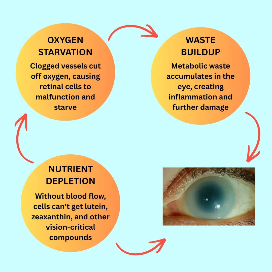 This happens because poor circulation starves your retinal cells of the oxygen and nutrients they desperately need to function.